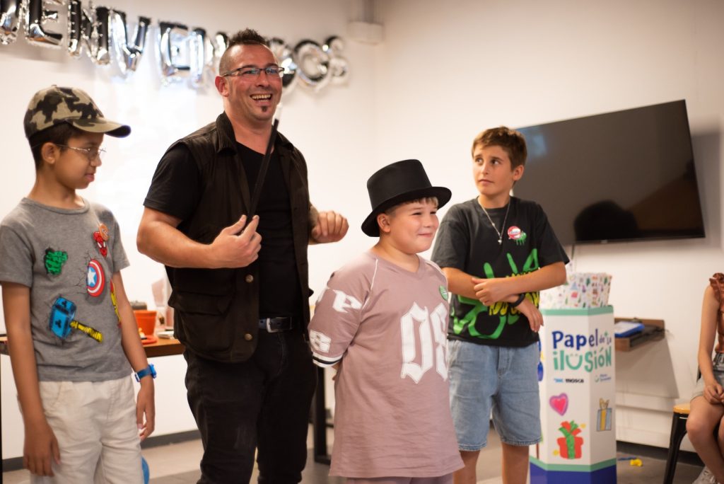 Allí, grandes y chicos de la fundación se reunieron para disfrutar de un show de magia en vivo, pensado especialmente para un público infantil, pero con momentos que también sorprendieron y emocionaron a los adultos presentes. La propuesta incluyó números participativos, humor, asombro y mucha diversión para los niños, generando un clima cálido y festivo.