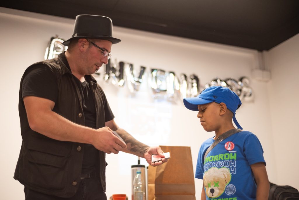 Allí, grandes y chicos de la fundación se reunieron para disfrutar de un show de magia en vivo, pensado especialmente para un público infantil, pero con momentos que también sorprendieron y emocionaron a los adultos presentes. La propuesta incluyó números participativos, humor, asombro y mucha diversión para los niños, generando un clima cálido y festivo.